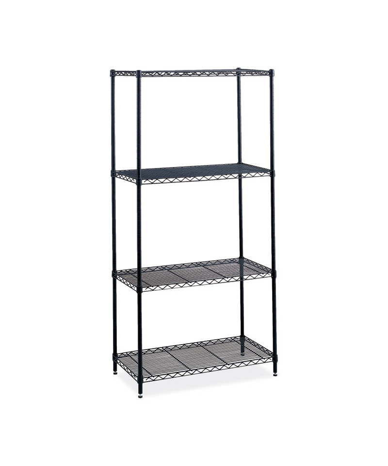 Industrial Wire Shelving, Four-Shelf, 36w x 18d x 72h, Black