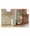 Strong, welded wire construction. Open wire design minimizes dust accumulation. Shelves adjust in 1" increments. Powder coated finish.