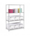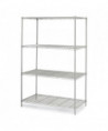 Strong, welded wire construction. Open wire design minimizes dust accumulation. Shelves adjust in 1" increments. Powder coated finish.