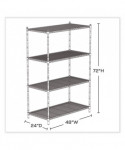Industrial Wire Shelving, Four-Shelf, 48w x 24d x 72h, Metallic Gray