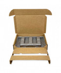 The EPE USA is a universal laptop packaging solution with a dock and accessories compartment. Sustainable, 100% recyclable and reusable. Just insert the product, close, tape (included) and ship. Single-wall construction.