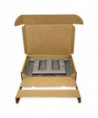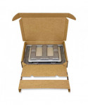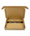 This universal laptop packaging solution has a dock and accessories compartment. Sustainable, 100% recyclable and reusable. Just insert the product, close, tape (included) and ship. Single-wall construction.