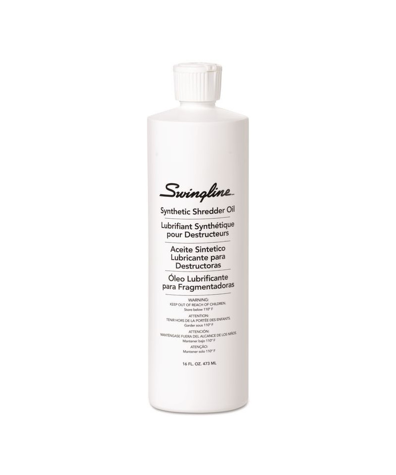 Compatible with any shredder, this oil lubricates the cutters to ensure best shredding performance. Swingline® oil is a synthetic blend that will not cause build-up on shredder parts. By reducing torque and allowing cutters to move freely, the oil helps to reduce the risk of paper jams. For high-level performance with a Swingline® SelfOil™ shredder, simply pour the oil into the shredder's designated oil reservoir. To use with standard shredders, pour a few streaks of oil on a sheet of paper and run it through the shredder.