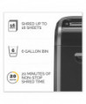 Provides powerful deskside shredding with jam protection. The 100% Jam Proof System eliminates paper jams and powers through tough jobs. SilentShred™ offers ultra-quiet performance for shared workspaces. Energy Savings System provides optimal energy efficiency 100% of the time-in use and out of use. SafeSense® Technology stops shredding when hands touch the paper opening. Shreds 16 sheets per pass into 5/32” x 1 1/2” cross-cut particles (Security Level P-4), and has a 6-gallon pull-out bin. Maximum run time: 20 on/30 off. For 1 user.
