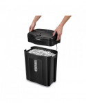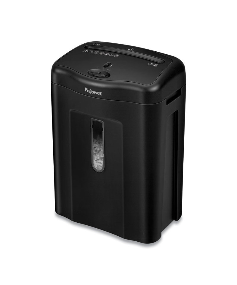 The Powershred® 11C Cross-Cut shredder provides reliable, medium duty shredding and is ideal for deskside use. Patented Safety Lock disables shredder for added safety protection. The 11C shreds 11 sheets per pass into 5/32" x 1 9/16" cross-cut particles (Security Level P-4) and also safely shreds staples, paper clips and plastic credit cards. It has a 4.8-gallon bin with easy lift-off head. Designed for individual use, the 11C shreds for up to 5 minutes before a 30 minute cool down period is needed.