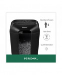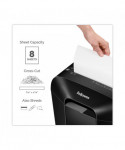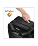 The Powershred® LX45 Cross-Cut Shredder is a reliable desk side shredder for personal use. It's elevated and sophisticated design brings distinction to any work or home office environment. The patented Safety Lock feature disables the shredder for added safety protection and peace of mind. The LX45 shreds 8 sheets per pass into 5 /32" x 1 15/32" cross-cut particles (Security Level P-4) and safely shreds staples, paper clips, and plastic credit cards. Its 4.4 gallon waste bin with easy lift-off head holds over 250 shredded sheets. Designed for individual use, the LX45 shreds for up to 6 minutes before a 20 minute cool down period is needed.