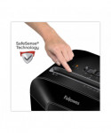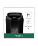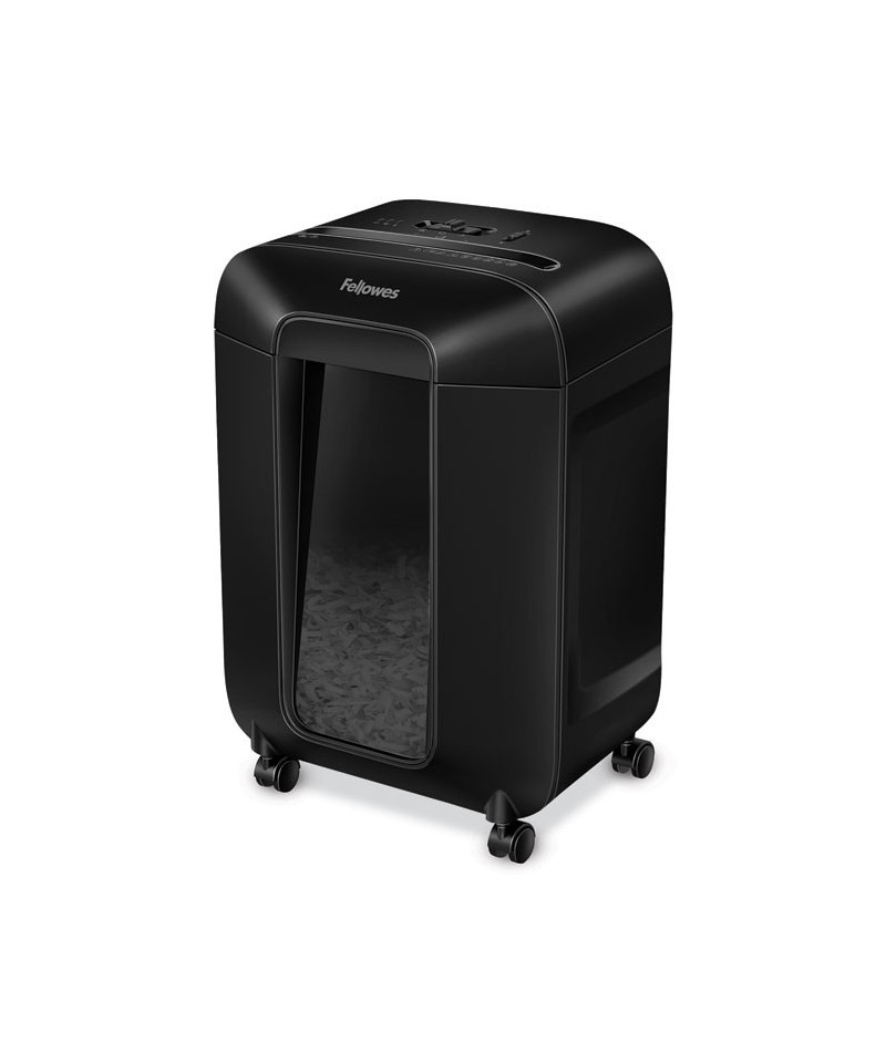 The Powershred® LX85 Cross-Cut Shredder is a reliable desk side shredder for personal use. It's elevated and sophisticated design brings distinction to any work or home office environment. The patented SafeSense Technology feature automatically stops the machine from shredding if hands or paws touch the paper entry, providing superior protection and peace of mind. The LX85 shreds 12 sheets per pass into 5 /32" x 1 9/16" cross-cut particles (Security Level P-4) and safely shreds staples, paper clips, plastic credit cards, and unopened junk mail. Its convenient, 5 gallon pull-out waste bin holds over 250 shredded sheets. Designed for individual use, the LX85 shreds for up to 20 minutes before a 30 minute cool down period is needed.