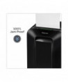 The Fellowes LX170 cross-cut shredder is thoughtfully designed and includes the groundbreaking new IntelliBar feature with patented responsive technology that is 100% Jam Proof, allowing you to shred safely and quietly with maximum protection, productivity and convenience. Effortlessly power through paper jams with 100% Jam Proof technology. Monitor real time performance with bin full and runtime indicators. Optimize how many sheets to feed at one time with the efficiency meter. The integrated patented SafeSense technology keeps shredding safe and accident free, especially around children and pets and leverages an elevated design that brings distinction to any work environment. The LX170 shreds 12 sheets of paper per pass into small cross-cut particles for enhanced security (Security Level P-4). In addition to paper, it also destroys staples, paper clips and plastic credit cards. The LX170 shreds continuously for up to 10 minutes allowing you to complete your shredding job in one sitting. Includes spacious 5.8 gallon pull-out bin that holds over 300 shredded sheets.