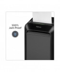 The Fellowes LX180 cross-cut shredder is thoughtfully designed and includes the groundbreaking new IntelliBar feature with patented responsive technology that is 100% Jam Proof, allowing you to shred safely and quietly with maximum protection, productivity and convenience. Effortlessly power through paper jams with 100% Jam Proof technology. Monitor real time performance with bin full and runtime indicators. Optimize how many sheets to feed at one time with the efficiency meter. The integrated patented SafeSense technology keeps shredding safe and accident free, especially around children and pets and leverages an elevated design that brings distinction to any work environment. The LX180 shreds 16 sheets of paper per pass into small cross-cut particles for enhanced security (Security Level P-4). In addition to paper, it also destroys staples, paper clips and plastic credit cards. The LX180 shreds continuously for up to 20 minutes allowing you to complete your shredding job in one sitting. Includes spacious 6 gallon pull-out bin that holds over 400 shredded sheets.