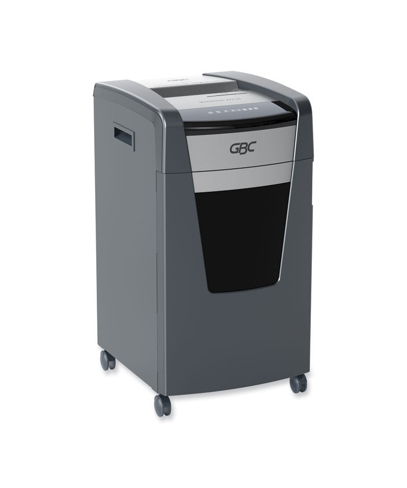 Keep sensitive and confidential information safe and secure with the GBC Momentum Paper Shredder. This shredder uses a micro-cut style shred, which provides P-4 Level Security. It's a great choice for shredding in the modern office. Active Sensing Anti-Jam Technology helps prevent and fix jams, which keeps your machine running smoothly. The high-performing motor has an impressive continuous run time so you can get more done without stopping. Special features include a bin full indicator, auto shut-off and eco mode. This machine easily shreds CDs, credit cards, paper clips, staples and junk mail.