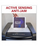 Micro-cut (P-4) shred style is perfect for shredding confidential documents. Active Sensing Anti-Jam Technology helps prevent jams before they occur. High-performance motor runs quietly and has a continuous run time. Easily shred CDs, credit cards, paper clips, staples and junk mail. Auto shut-off and eco mode setting.