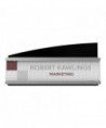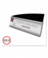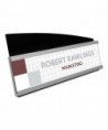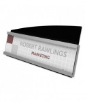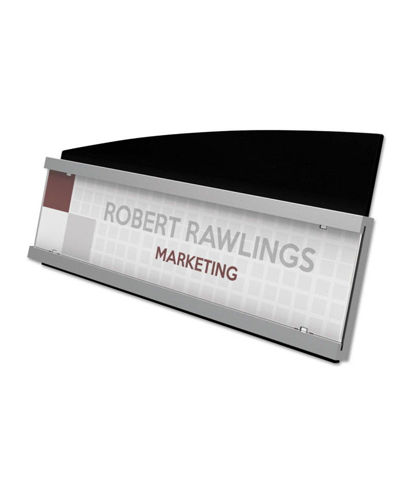 Cost-effective, versatile facility sign features a durable, distinctive design with silver and black accents. Inserts easily slide in and out of holder from the side for quick message changes. The anti-glare sheet protector keeps inserts clean and easy to read. Adapts for use on desktop, countertop, fabric partitions, or mount to the wall. Mounting hardware included for easy set up and display.