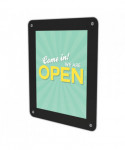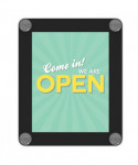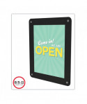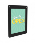 Double-sided display easily mounts to glass, and non-porous doors and walls with suction cups (included). Inserts simply slide in and out. Clear plastic protects and keeps message visible. For horizontal or vertical display. Heat-resistant/UV protected for long life.