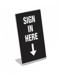 Slanted L-Shaped Countertop Sign HolderSide-loading L-shaped sign holders can be oriented horizontally or vertically and are ideal for displaying one-sided materials.