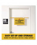 Safety sign imprinted with "Closed for Cleaning" is mounted on a twist-action pole that extends up to 50" wide to prevent entry through even wide hospital doors.