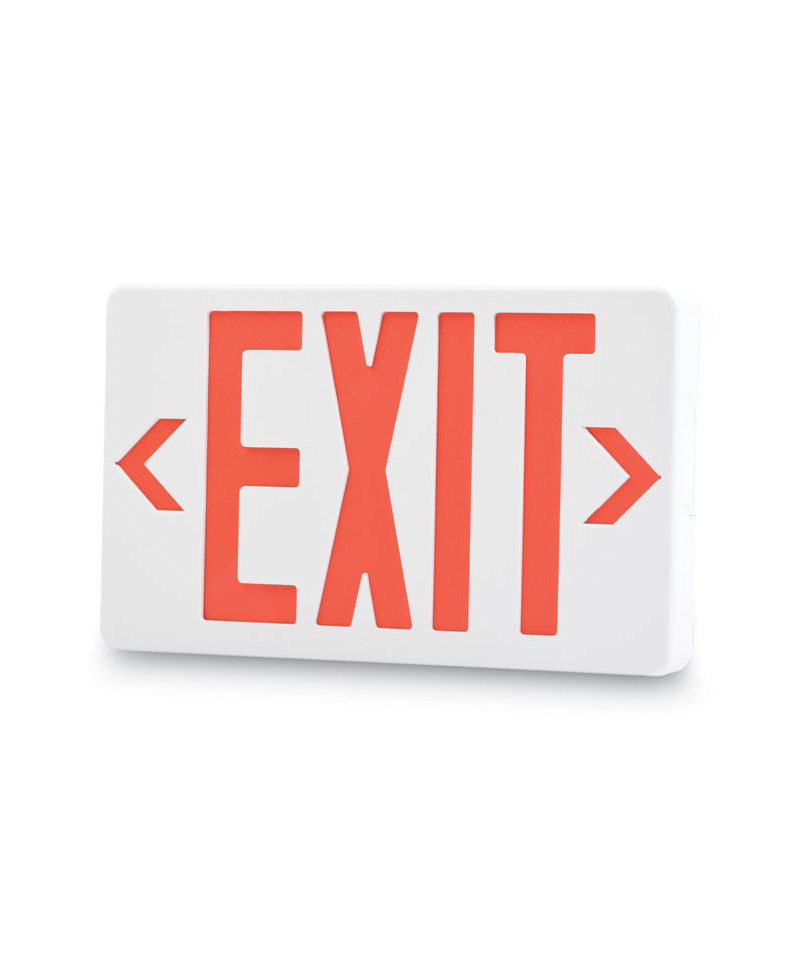Automatically turns on when power fails. Energy-saving LED light source lasts up to 25 years. 120/277 dual-voltage input. Sealed, maintenance-free back-up battery provides 90 minutes of emergency operation and lasts up to ten years. Fully automatic charger. Front and rear stencils with snap-out directionals. Mounts on ceiling or wall. Mounting hardware included.