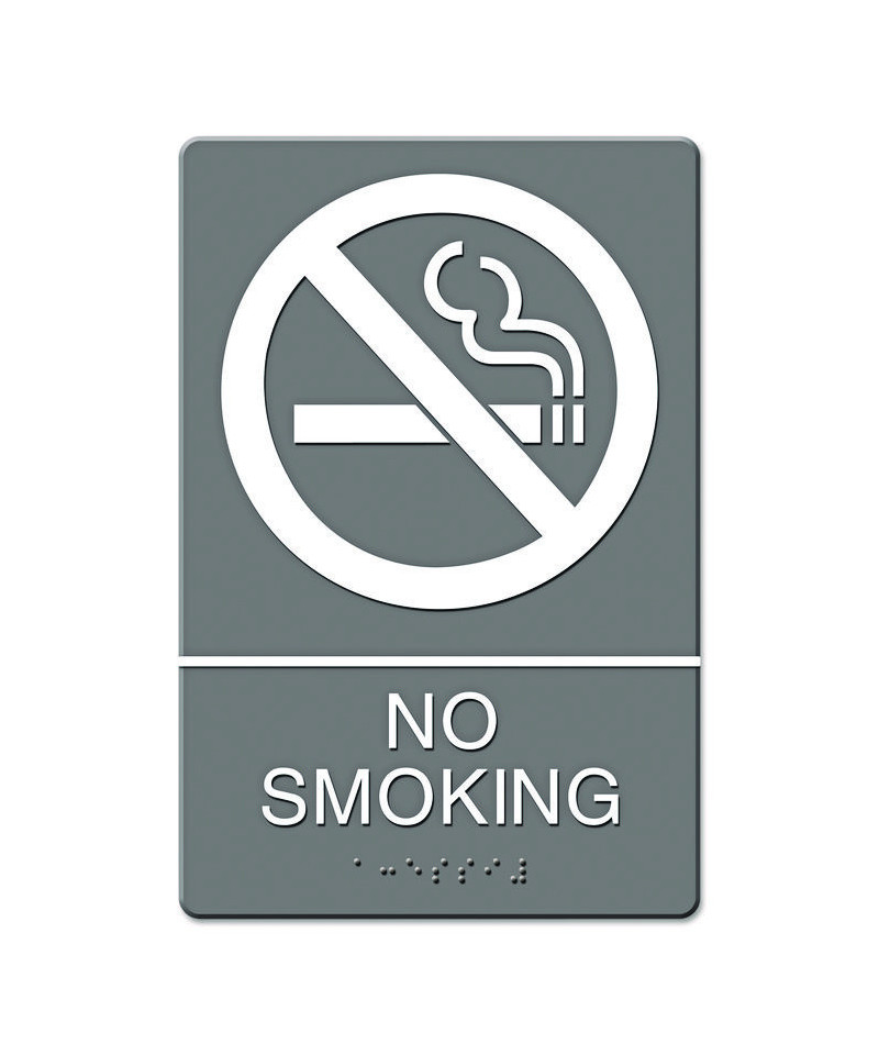 Universally and easily recognizable white graphics. Raised tactile graphics with Grade 2 Braille. Meets Americans with Disabilities Act (ADA) requirements. Includes double-side adhesive tape for mounting to door or wall.