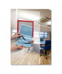 Professionally display signage with DURAFRAME® Self-Adhesive Sign Holders from DURABLE®. Quickly and seamlessly showcase important information on windows, glass doors, or any smooth, solid surface, offering instant visibility exactly where you need it most. It's double-sided so you can display two messages simultaneously. Perfect for storefronts, entry or exit doors, conference rooms, or anywhere signage needs to be seen from both directions. The flip-up magnetic frame securely holds multiple pages, enabling infinite updates to your promotions, announcements, safety information, or directional signage. The sleek and modern design of the frame enhances the aesthetic appeal of your displays no bulky mounting hardware or unsightly tape. With easy application and repositioning, you can confid