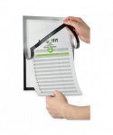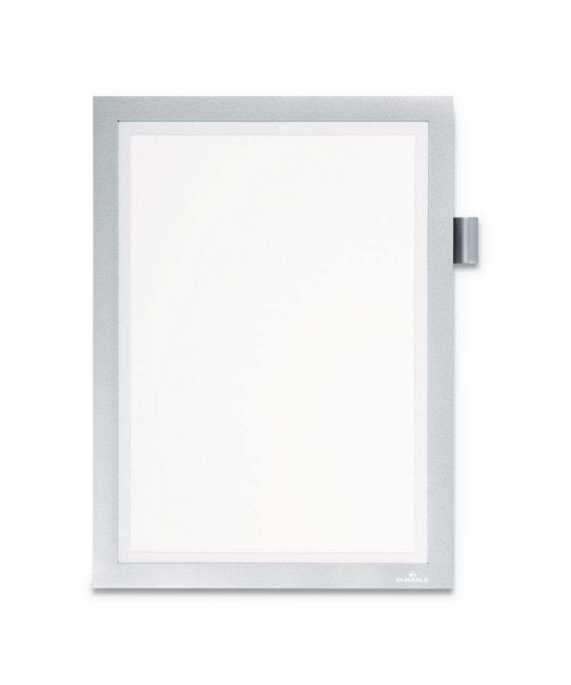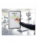The DURAFRAME® Note Sign Holder from DURABLE® is the go-to solution for effortless professional document display. The front frame is open and has a built-in universal pen holder, perfect for cleaning logs, guest sign in/out, activity sign-up sheets, maintenance logs, procedures, schedules, SOPs, checklists, and anywhere where multiple people need to write down notes or other information on the same document. The backside of the frame is transparent, if mounted on windows, glass doors, and glass walls, you can also display promotions, announcements, safety info, or directions at the same time. Easily showcase sign-up sheets on windows, glass doors, or any smooth, solid surface, instantly grabbing attention and effectively conveying your message right where you need it. Perfect for fast-paced environments, like offices, apartment buildings, gyms, retail stores, hotels, restaurants, schools, warehouses, healthcare facilities, manufacturing plants, and anywhere where multiple people need to write down notes or other information on the same document. Keep your documents up to date with the innovative flip-up magnetic frame. This unique design means you can update documents without any hassle. Simply lift the frame, swap out your content, and secure it back in place with the magnetic closure. With no bulky mounting hardware or unsightly tape, these sign holders have a clean and modern appearance. DURAFRAME's self-adhesive backing securely adheres to any smooth, solid surface, and can be repositioned without leaving behind any residue, giving you the flexibility to adjust your signage as needed. Tailor your signage to fit your unique space perfectly by placing DURAFRAME in portrait or landscape orientation. For over 100 years, DURABLE has been synonymous with quality, design, and functionality. As a testament to this legacy, DURABLE products combine innovative design with a wealth of experience. Therefore, this is why DURAFRAME isn't just a sign holder; it's a commitment to presenting your business professionally. This unparalleled quality and attention to detail ensures your signage makes a lasting impression.