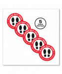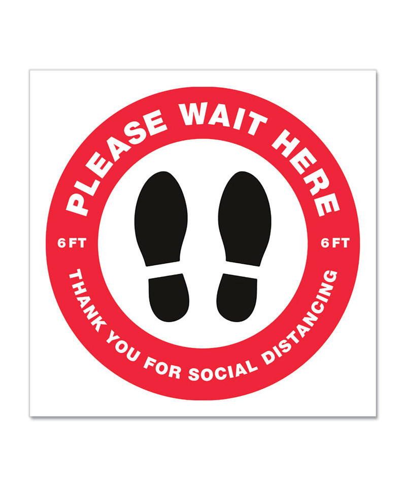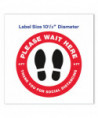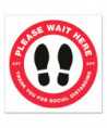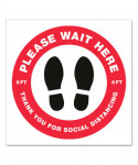 Social Distancing Floor Decals, 10.5" dia, Please Wait Here, Red/White Face, Black Graphics, 5/Pack