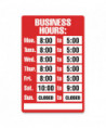 Attention-getting, red plastic sign with front display is easily customized and updated. Includes two sheets of static cling letters and numbers plus seven "CLOSED" stickers.