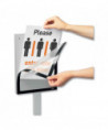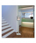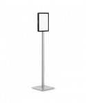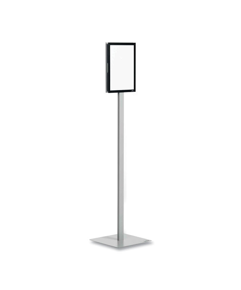 The Info Stand BASIC Tabloid-Size Floor Stand from DURABLE® is the go-to solution for effortless professional signage display. Easily showcase important information, instantly grabbing attention and effectively conveying your message right where you need it. Its sleek and professional appearance is perfect for directions, menu displays at host stands, guest information in lobbies and hotel entrances, valet and parking signage, safety alerts, restroom signage, and promotions. The double-sided visibility displays two messages simultaneously for maximum impact. Perfect for store entrances, conference centers, or any area where signage needs to be seen from both sides. Keep your messaging up to date with the innovative flip-up magnetic DURAFRAME frames. This unique design means you can update promotions, announcements, safety information, or directional signage without any hassle. Simply lift the frame, swap out your content, and secure it back in place with the magnetic closure. This keeps your signage fresh, relevant, and engaging for your employees and customers. The frame rotates 360° so you can display signage in either portrait or landscape orientation to best suit your display needs, offering flexibility and versatility for various signage applications. Constructed from aluminum, and a weighted base with non-slip pads, the stand offers maximum stability, preventing any potential tipping. For over 100 years, DURABLE has been synonymous with quality, design, and functionality. As a testament to this legacy, DURABLE products combine innovative design with a wealth of experience. Therefore, this is why Info Sign BASIC isn't just a sign holder; it's a commitment to presenting your business professionally. This unparalleled quality and attention to detail ensures your signage makes a lasting impression.