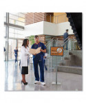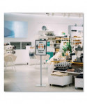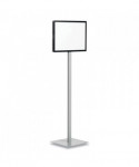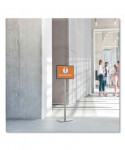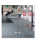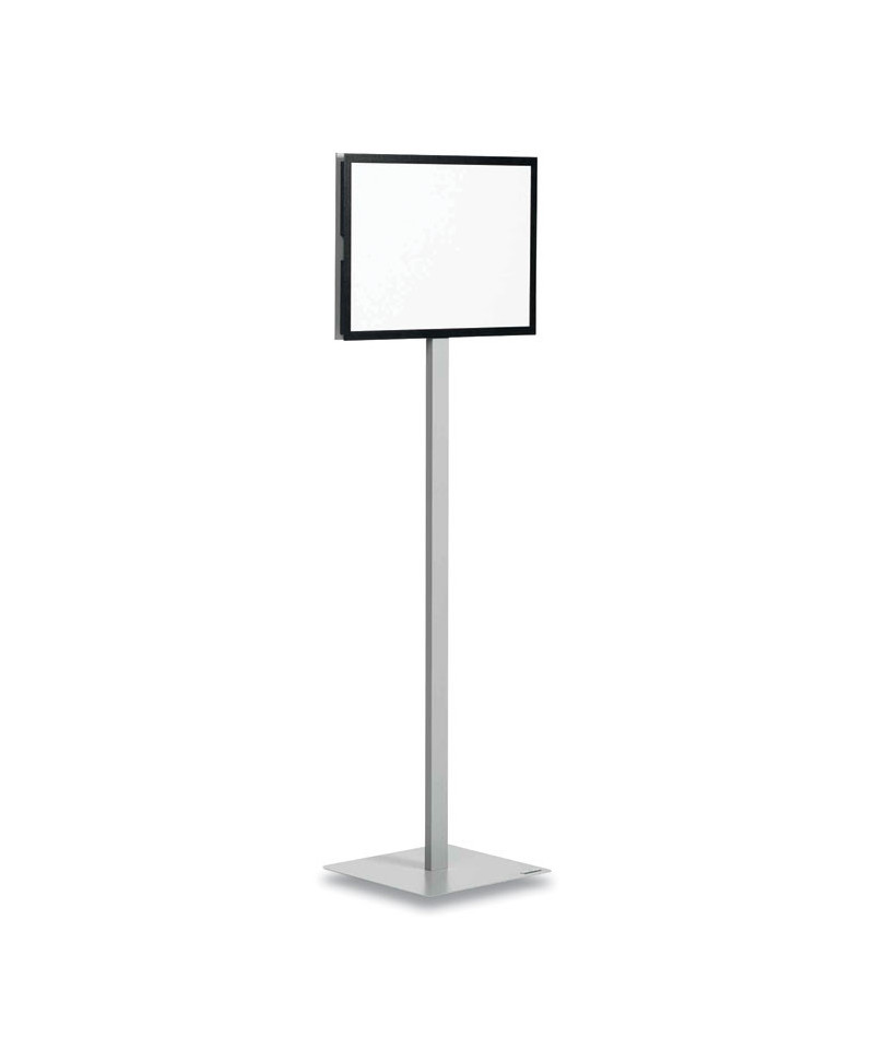 The Info Stand BASIC Tabloid-Size Floor Stand from DURABLE® is the go-to solution for effortless professional signage display. Easily showcase important information, instantly grabbing attention and effectively conveying your message right where you need it. Its sleek and professional appearance is perfect for directions, menu displays at host stands, guest information in lobbies and hotel entrances, valet and parking signage, safety alerts, restroom signage, and promotions. The double-sided visibility displays two messages simultaneously for maximum impact. Perfect for store entrances, conference centers, or any area where signage needs to be seen from both sides. Keep your messaging up to date with the innovative flip-up magnetic DURAFRAME frames. This unique design means you can update promotions, announcements, safety information, or directional signage without any hassle. Simply lift the frame, swap out your content, and secure it back in place with the magnetic closure. This keeps your signage fresh, relevant, and engaging for your employees and customers. The frame rotates 360° so you can display signage in either portrait or landscape orientation to best suit your display needs, offering flexibility and versatility for various signage applications. Constructed from aluminum, and a weighted base with non-slip pads, the stand offers maximum stability, preventing any potential tipping. For over 100 years, DURABLE has been synonymous with quality, design, and functionality. As a testament to this legacy, DURABLE products combine innovative design with a wealth of experience. Therefore, this is why Info Sign BASIC isn't just a sign holder; it's a commitment to presenting your business professionally. This unparalleled quality and attention to detail ensures your signage makes a lasting impression.