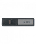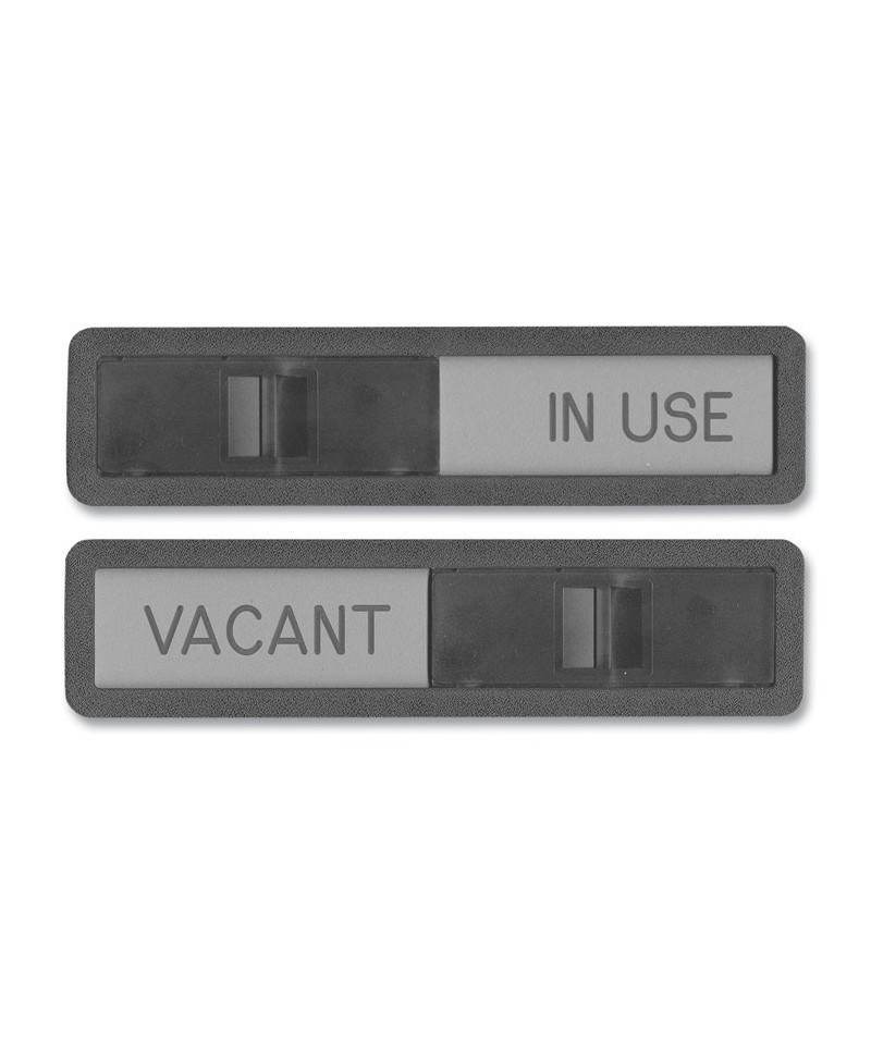 Engraved plastic sign with sliding cover plate displays when a room is "Vacant" or "In Use". Can be mounted with screws (not included) or double-sided tape (included). Use for meeting rooms, darkrooms, offices, or interview rooms. Black and light gray to work in any office decor.