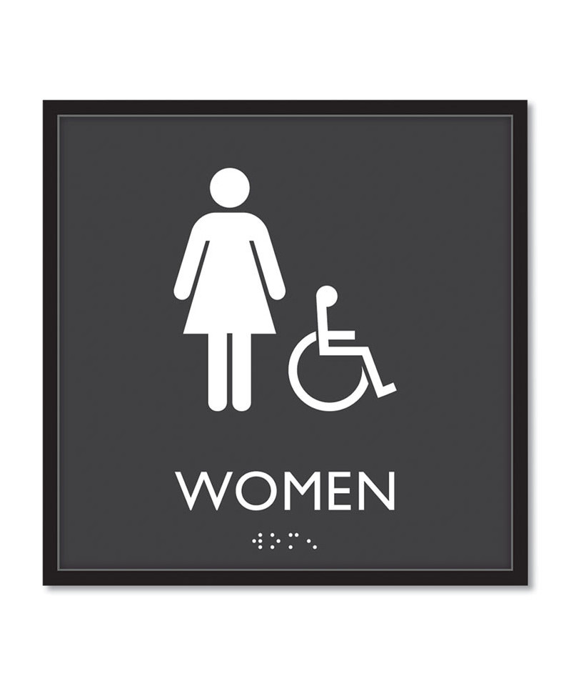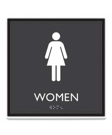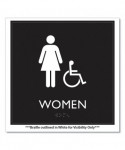 Universally and easily recognizable white graphics. Raised tactile graphics with Grade 2 Braille. Meets Americans with Disabilities Act (ADA)...