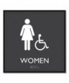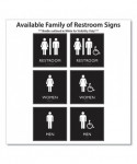 Universally and easily recognizable white graphics. Raised tactile graphics with Grade 2 Braille. Meets Americans with Disabilities Act (ADA) requirements. Includes double-side adhesive tape for mounting to door or wall.