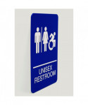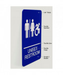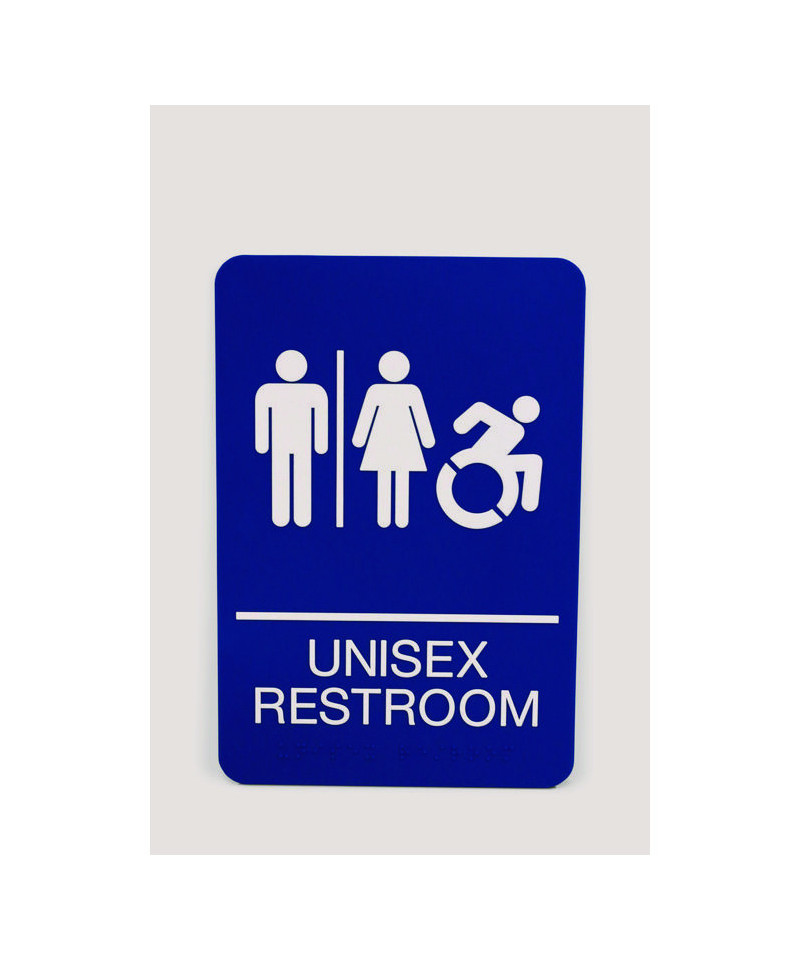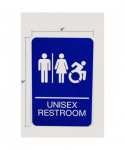 Universally and easily recognizable white graphics. Raised tactile graphics with Grade 2 Braille. Meets Americans with Disabilities Act (ADA) requirements. Includes double-side adhesive tape for mounting to door or wall.