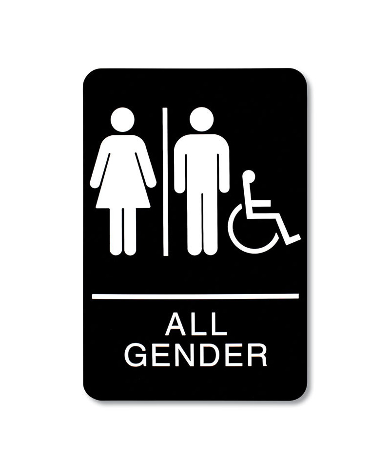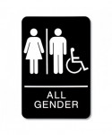 Universally and easily recognizable white graphics. Raised tactile graphics with Grade 2 Braille. Meets Americans with Disabilities Act (ADA) requirements. Includes double-side adhesive tape for mounting to door or wall.