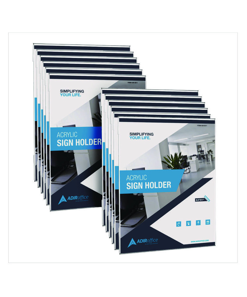 Wall Mount Side-Loading Acrylic Sign Holders, 8 x 11, Clear Frame, 12/Pack