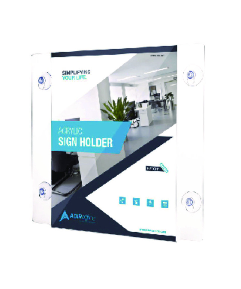 Posting temporary notices for employees, customers, special events, sales, opening/closing hours no longer needs reliance on cellophane tape, masking tape or similar stickums that leave messy residue on glass walls, doors and windows when the event is over. This sign holder is the best alternative to taped notices and subsequent challenges of removing tape residue from glass surfaces. Separate notices on large stock easily slip into the clear acrylic AdirOffice sign holder to reach incoming and outgoing patrons and personnel with relevant messages. Though firmly attached to glass surfaces with its four suction cups, the sign holder is easily lifted up and off to clean glass behind the sign support.