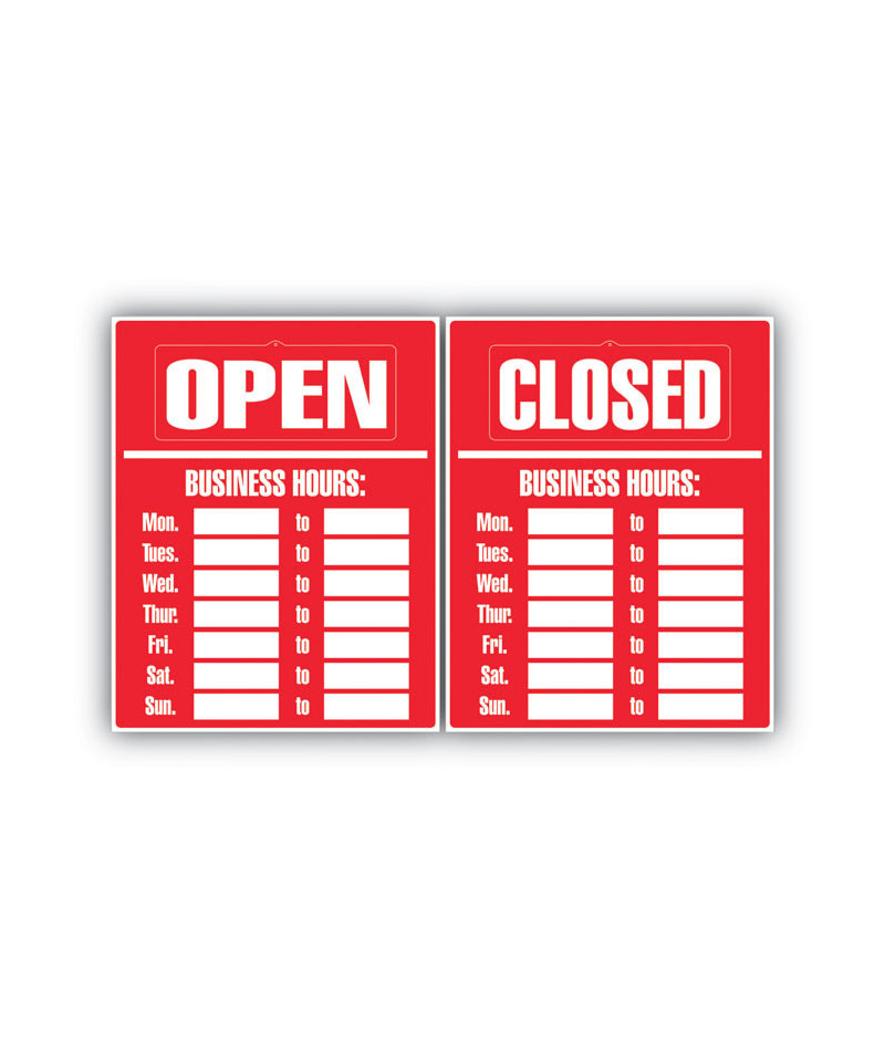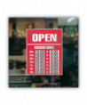 Keep customers informed with the COSCO Business Hours Sign Kit, designed to provide a professional and highly visible way to display your store hours. This sign includes static cling letters and numbers, making it simple to customize or update your hours whenever needed. A convenient rotatable "Open" and "Closed" panel allows for quick changes, ensuring customers always know your business status. Built with durable materials for daily use, this sign is perfect for retail stores, offices and service-based businesses that need a reliable and professional signage solution.