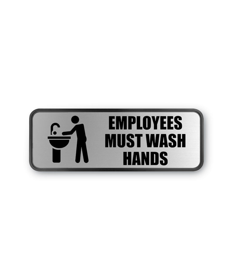 Brushed Metal Office Sign, Employees Must Wash Hands, 9 x 3, Silver