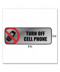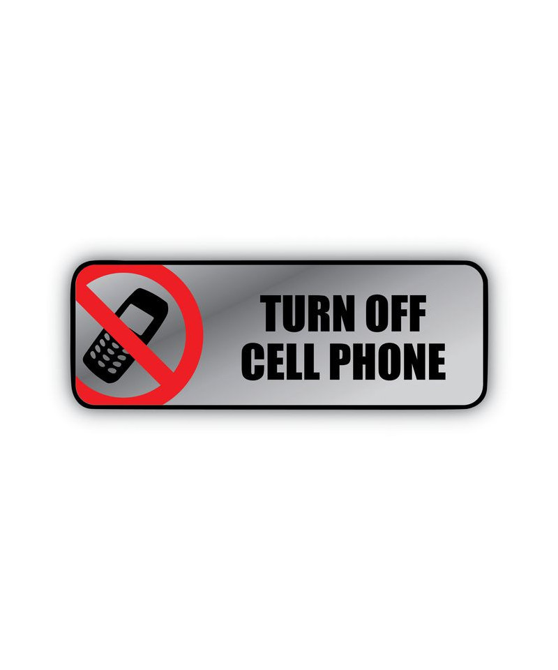 Brushed Metal Office Sign, Turn Off Cell Phone, 9 x 3, Silver/Red