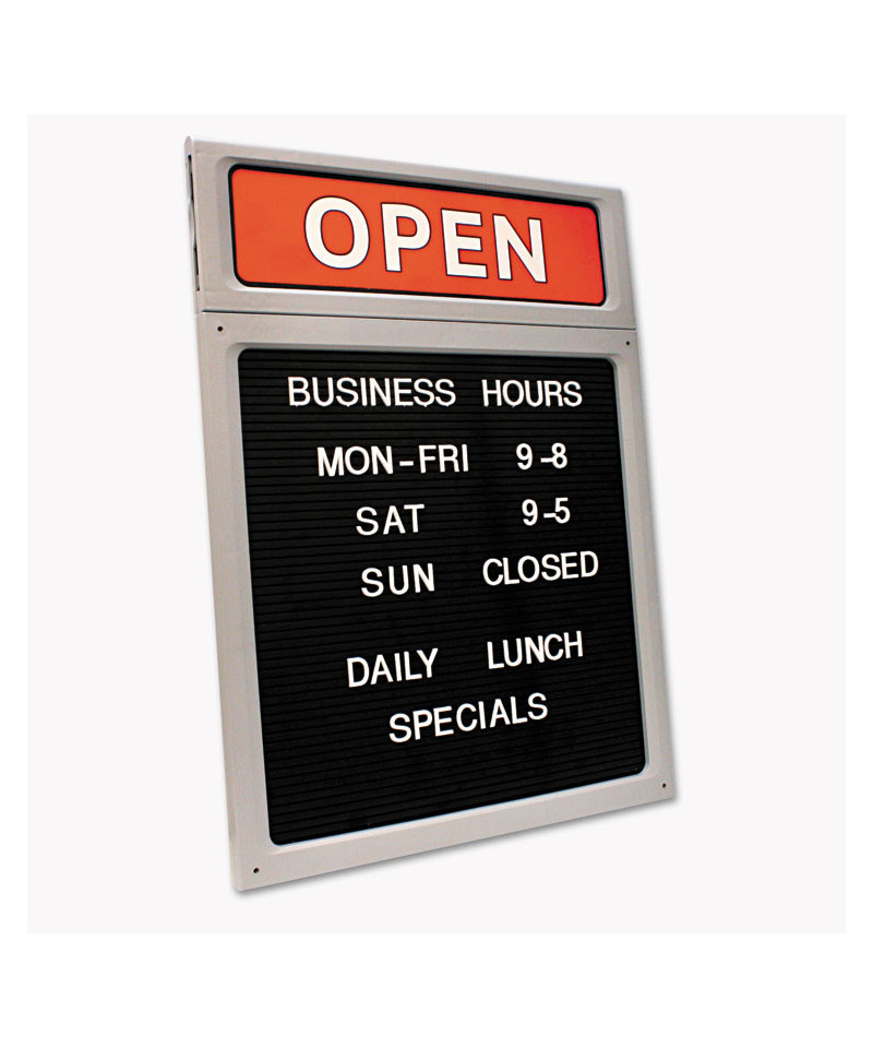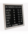 Clearly communicate with customers using the COSCO Message/Business Hours Sign, designed with a framed style for a professional look. The customizable sign includes molded letters and numbers, allowing you to create clear messages that are easy to read. It also comes with a Business Hours insert, ensuring your customers always know when you are open. Built to last, this sign is ideal for storefronts, offices and service businesses looking for a simple yet effective way to keep communication visible, updated and professional.