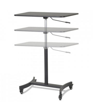 Ideal for laptops and perfect for small spaces, homes, and personal offices. Aluminum base construction provides a sleek, lighter and elegant look. Slim height, adjustable laptop desk turns any space into an adjustable height sit to stand workstation. Raise and lower with ease within a 14.5" range. Raises and lowers vertically within the same plane so there's no need to step back and out when in the raised position. Non-skid rubber pads protect work surface from scratches or scuffs. Lightweight (less than 15 lb) and compact design allows for easy storage when not in use.