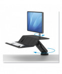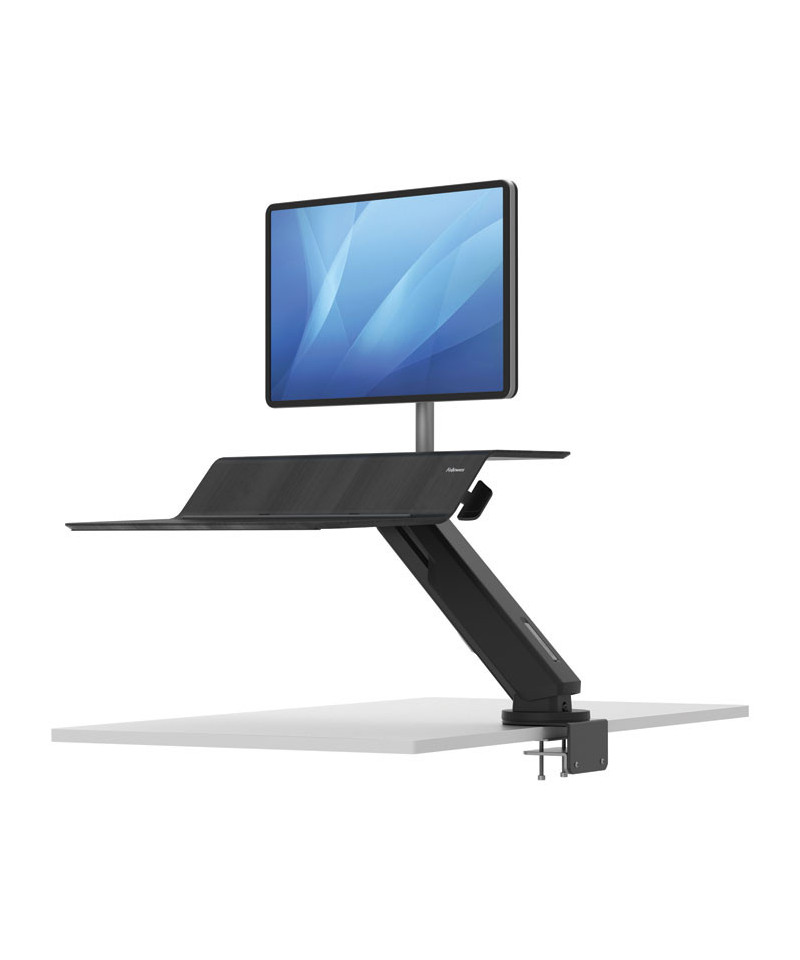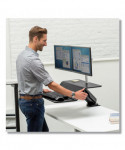 Ultimate flexibility with TriMotion™: 180° rotation at the base, 180° worksurface rotation, 17" vertical adjustment. Strong and stable with real wood work surface and steel gas spring arm. Transition easily with one-handed adjustment (left or right handed). Keep essentials in reach with dual work surfaces and device viewing channel. Manage all cables with integrated cable channel. Mount to the back edge of any work surface with adjustable clamp design.