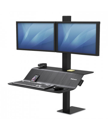Gas assisted continuous height adjustment allows you to move smoothly and quietly between sitting and standing positions in seconds. Height adjustment range from 6.2'' to 20'' above the desk accommodates a wide range of users. 10°/-10° keyboard surface tilt to help achieve comfortable typing position. Primary work surface is large enough to fit two 24'' monitors and holds up to 35 lb. Includes 3M Gel Wrist Rest for your keyboard and 3M Precise Mouse Pad. Pre-assembled solution eliminates need for installers.