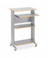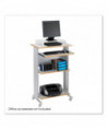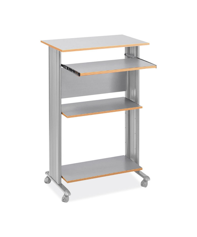 The Muv™ Stand-Up Desk features a tall workstation and durable powder-coated steel frame. The stand-up desk is furnished with a 24.75 width adjustable printer tray and a keyboard panel that extends in 1 increments. Exceptional cable management with molded modesty panels on each side hide cords. A mobile stand-up desk solution with four casters (two locking). All work surfaces and shelves made of durable 0.75 melamine laminate.