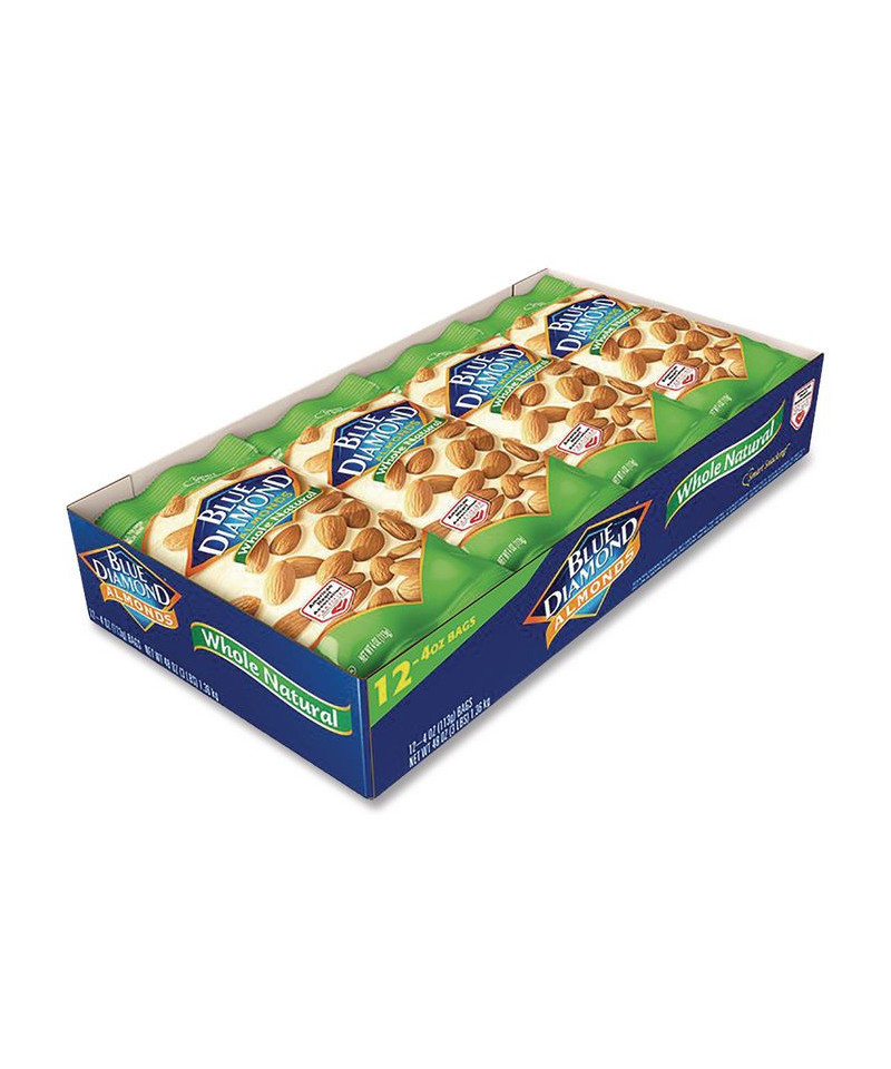 Whole Natural Almonds, 4 oz Bag, 12 Bags/Box