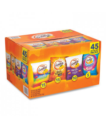 Add to cart Goldfish Crackers, Cheddar, 1.5 oz Bag, 30 Bags/Box $69.59 Swim through your afternoon with tasty baked snack crackers in your favorite fishy shapes. Baked crackers have zero grams trans fat. Yummy cheddar...