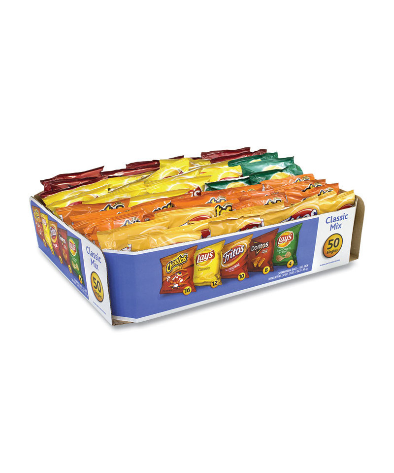 Can't decide what you want to munch on late afternoon at work, or what you want to send to school with your children for lunch? Change it up with this variety pack of all your Frito Lay favorites! Contains: Crunchy and Cheesy Cheetos, Lay's Classic Potato Chips, Frito's Corn Chips, Doritos' Nacho Cheese, Lays' Sour Cream and Onion Chips. Tasty and easy snacks for the whole family for on the go or lounging at home.