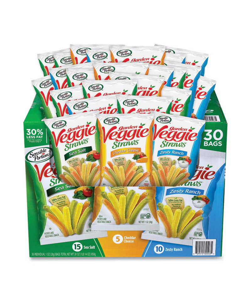 Tasty veggie straws offer a satisfying crunch on the go. With 30% less fat than regular chips, these delicious straw shaped snacks are an ideal fun snack. Cholesterol-free straws are made with all-natural ingredients. Packaged in convenient, single-serve portions, veggie straws are perfect for eating anywhere, anytime.