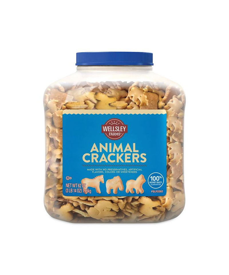 Lions, elephants and horses, oh my! Animal crackers let you can snack on all of the classic animal shapes made with no preservatives, artificial flavors, colors or sweeteners. This 62 oz resealable tub is teeming with Kosher, all-natural light crunchy crackers. Perfect for grabbing a handful on the go, or packing a small bag full, they are delicious and great for children of all ages, especially children at heart.