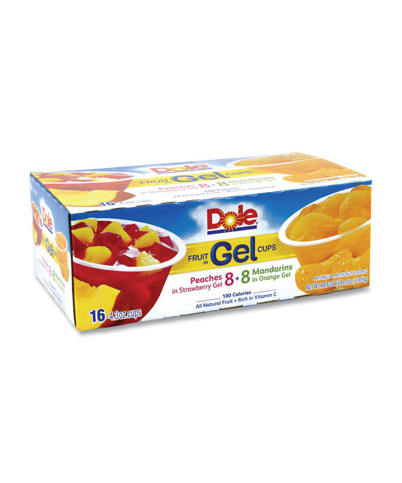 Made with all-natural fruit and juice, Dole® Fruit in Gel Cups are a deliciously sweet way to enjoy a healthy snack. Only 100 calories and rich in vitamin C. Great for packing in a lunch for school or summer camp, and just as good stored in the office fridge for when a craving hits.