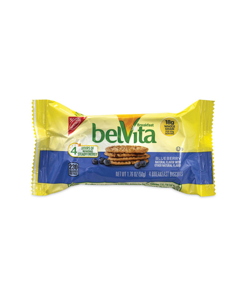 belVita Breakfast Biscuits, Blueberry, 1.76 oz Pack, 25 Packs/Carton
