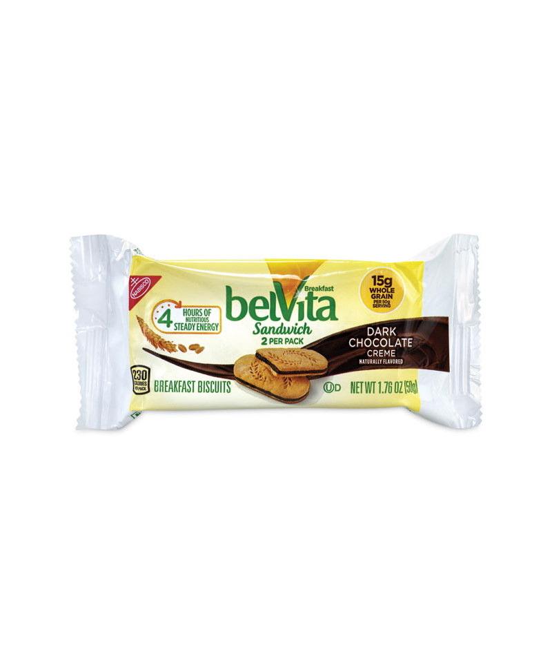 belVita Breakfast Biscuits, Dark Chocolate Creme Breakfast Sandwich, 1.76 oz Pack, 25 Packs/Carton